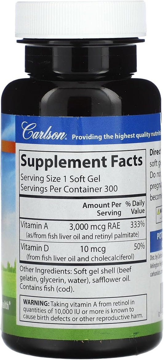 Carlson Labs Vitamin A and D Softgels - 10000/400 IU, 300 Count - High Quality Supplement for Overall Health and Wellness