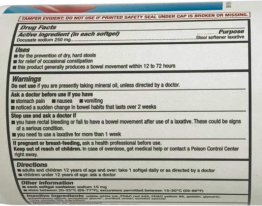 500 Count CVS Health Extra Strength Docusate Sodium Softgels for Stool Softening