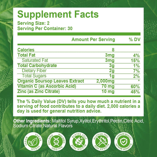 2 Pack Soursop Graviola Gummies - 2000mg Extract with Vitamin C & Zinc for Immunity - Vegan Immune Support Supplement - 120 Gummies