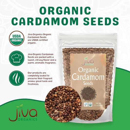 3.5 oz Bag of Jiva Organics Black Cardamom Seeds - Decorticated, Organic & Non-GMO - Premium Quality