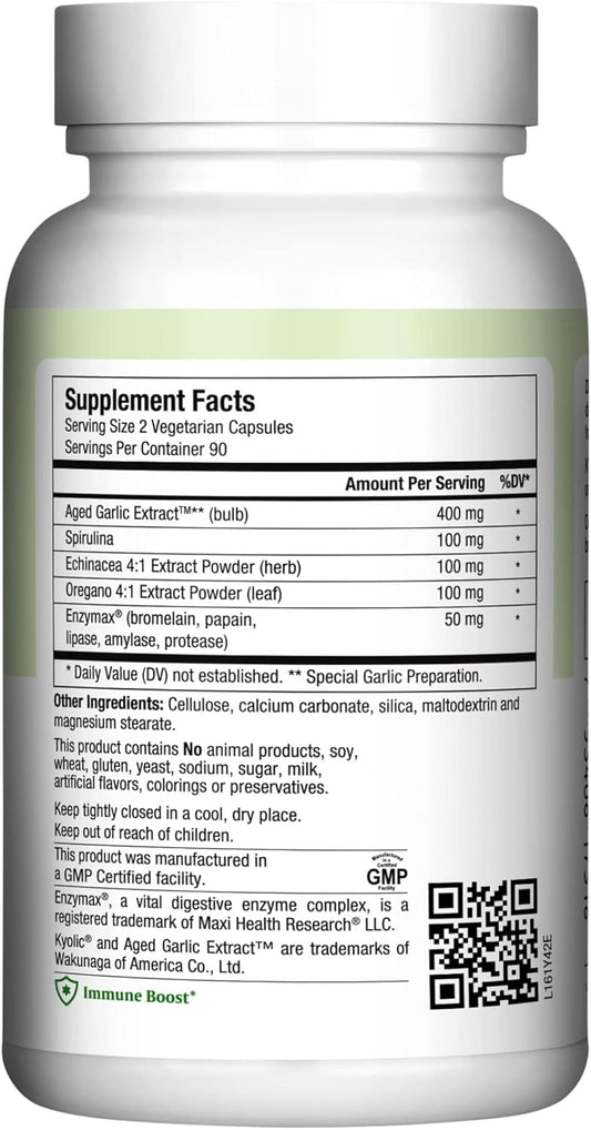 180 Count Maxi Health Aged Garlic Extract Capsules with Spirulina, Echinacea, Oregano - Antioxidant Supplement for Wellness Support