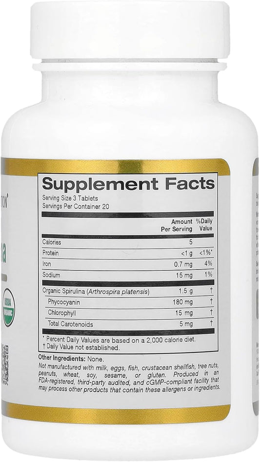 California Gold Nutrition Organic Spirulina Supplement β 500mg, 60 Tablets, Antioxidant Rich, Vegan, Gluten Free