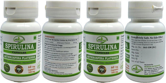 Superfood Spirulina Capsules - Natural Nutritional Supplement for Full Body Support - 120 Capsules in Pack of 2