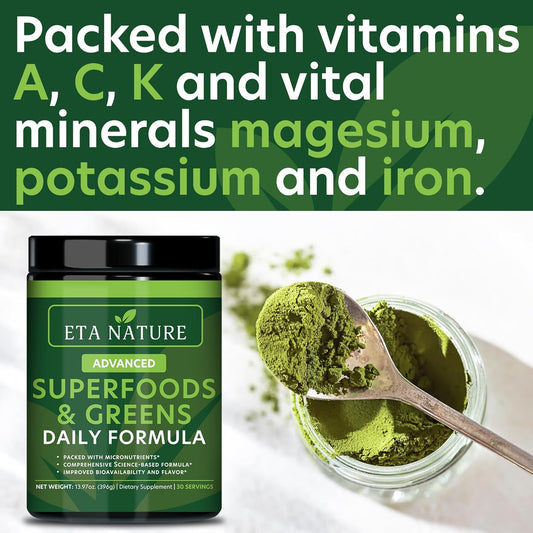 Super Greens Powder for Immunity, Energy, Digestive & Liver Health - Fruits & Veggies Supplements - Vitamins & Minerals - 396g