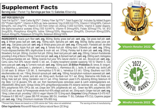Vibrant Health Green Vibrance Packets - Vegan Superfood Powder, Travel-Friendly, 15 Packets, FFP