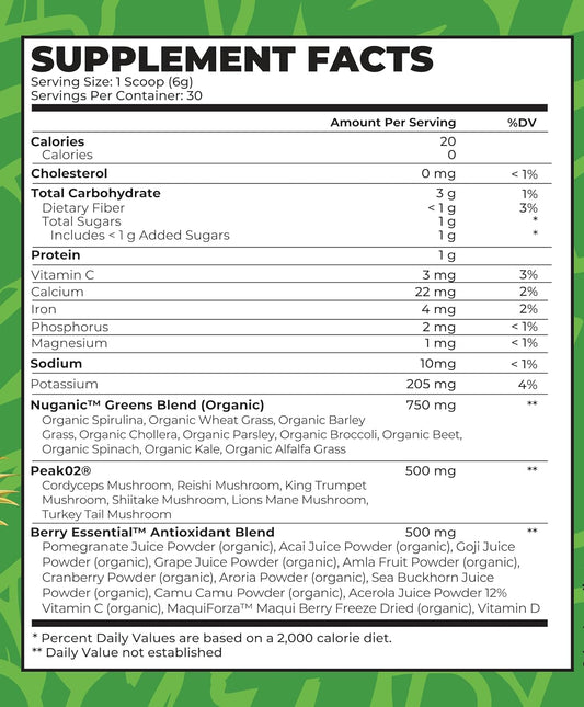 Organic Greens Powder Superfood Supplement with Fruits, Veggies, Antioxidants, Mushroom Blends - Supports Digestive Health - Gluten-Free, Non-GMO, Vegan - Pineapple Flavor - 180g