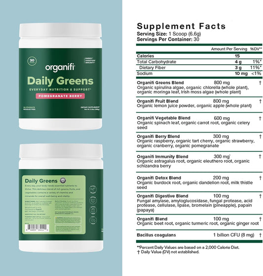 Organifi Daily Greens Powder - Boost Energy, Aid Digestion, and Strengthen Immunity - 30 Servings