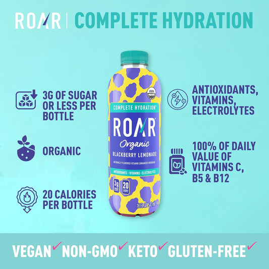 Organic Electrolyte Drink with Vitamins C, B5, B12 - Non-GMO, Gluten-Free - Blackberry Lemonade - 12 Pack