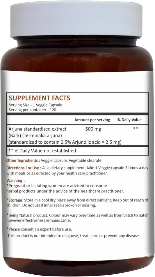 Arjuna Capsules - Standardized Extract Wellness Supplement, 120 Count (500mg) with Arjuna Bark Extract for Health & Wellness