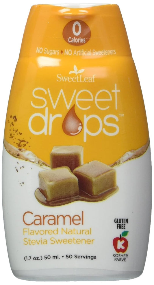 SweetLeaf Liquid Stevia Sweetener in Caramel Flavor and WaterDrops in Peach Mango Flavor - 2 Pack, 1.7oz and 1.62oz
