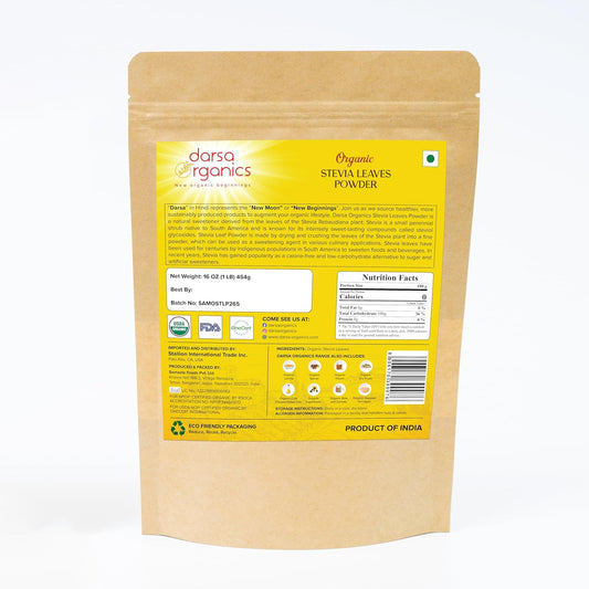 16 oz Darsa Organics USDA Organic Stevia Powder - Pure Natural Sweetener for Cooking & Baking, Zero Calorie Sugar Substitute from India