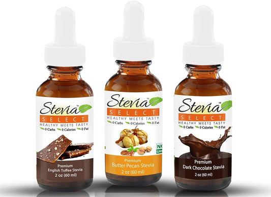 Stevia Select Keto Coffee Sugar-Free Flavors Bundle - Butter Pecan, Chocolate, & English Toffee Stevia Drops (3 Pack)