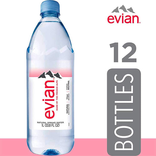 evian Natural Spring Water 1 Liter Bottles - Pack of 12 - Hydrating, Refreshing Mineral Water from the French Alps