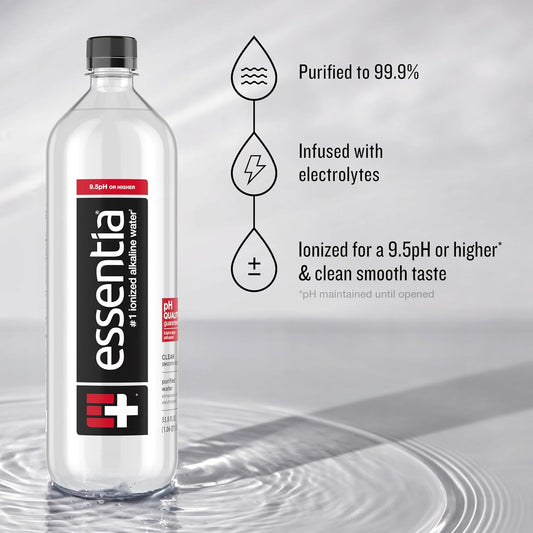 Essentia Water LLC Ionized Alkaline Water Black 42.3 Fl Oz (Pack of 12) - 99.9% Pure Electrolyte-Infused pH 9.5 or Higher Smooth Taste