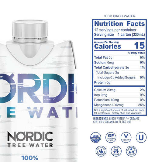 USDA Organic Nordic Tree Water: Birch Sap with Electrolytes, Minerals, Prebiotics, and Vitamins - Sustainable Hydration from Finland - BPA-Free Tetra Pak - Low-Calorie Alternative to Coconut Water