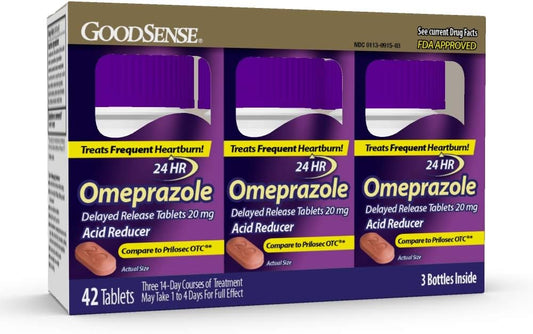 Bundle of 3 Packs of GoodSense Omeprazole Delayed Release Tablets 20mg and TUMS Ultra Strength Chewable Antacid Tablets Assorted Berries 160 Count for Heartburn Relief