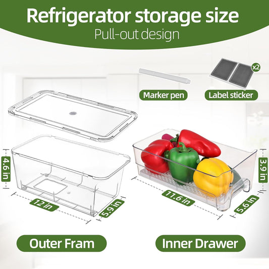 Clear Plastic Stackable Fridge Organizer Drawers with Lids, 4 Pack - Refrigerator, Bathroom, Kitchen, Undersink Storage Organizers
