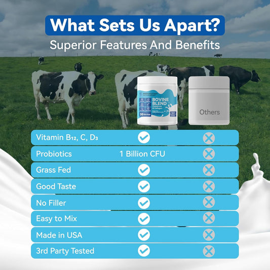 Bovine Colostrum & Collagen Powder for Gut Health, Immune Support, Hair Growth - Sugar Free Supplement with IgG, Probiotics, Vitamin B12, C, D3 - Unflavored, 30 Servings