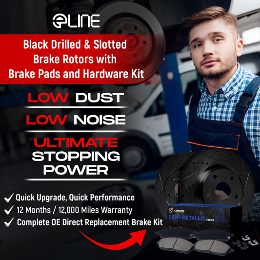 Semi Metallic Rear Brake Pads and Rotors Kit for 2014-2019 Mercedes-Benz B Electric Drive, B250e, CLA250 | Hardware Included