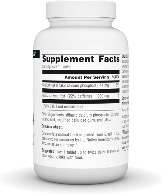 Natural Guarana Energizer Supplement - 900 mg Caffeine and Energy Booster - 100 Tablets by Source Naturals