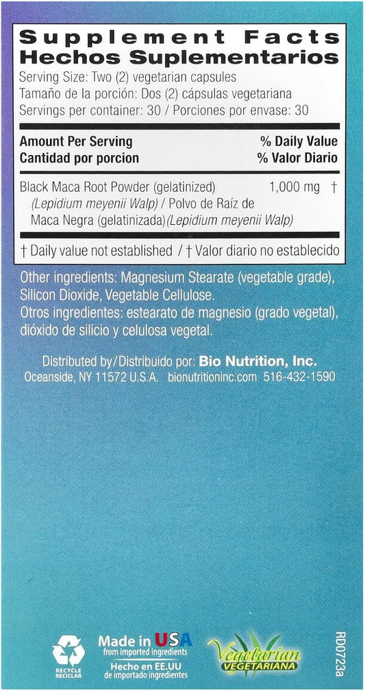 Organic Gelatinized Black Maca Capsules - 1,500mg per Serving - Energy Boost with Calcium, Magnesium, and Phosphorus - 60 Vegetarian Capsules