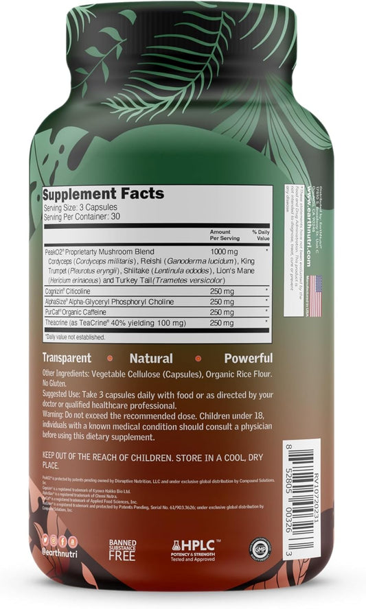 EarthNutri Energy + Focus Capsule - Cognitive, Mood, and Memory Support - 90ct, 3 Capsules/Serving
