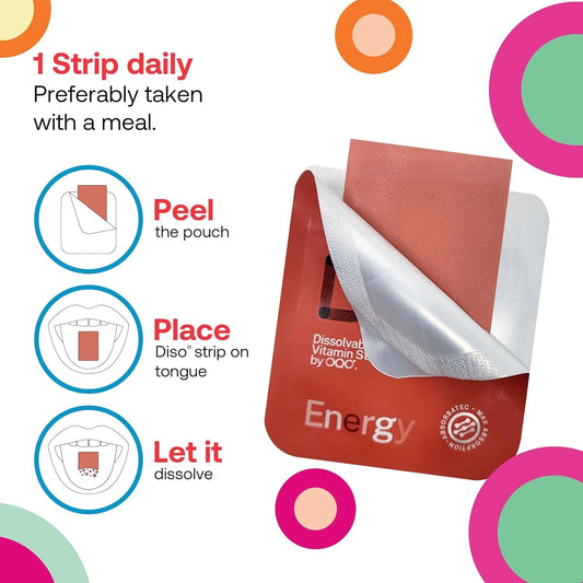 Cranberry Flavored Energy Strips - Boost Vitality and Focus Daily, Easy-to-Use Supplement for Energy Enhancement, 30 Oral Strips