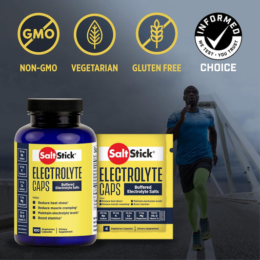 SaltStick Electrolyte Capsules for Running & Hydration - 24 Packets, 4 Capsules per Packet - Salt, Magnesium, Potassium & Vitamin D3 Formula for Leg Cramps Relief & Sports Recovery