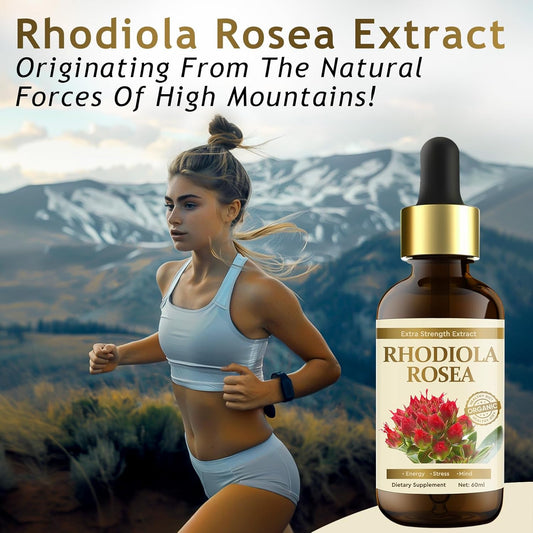 Organic Rhodiola Rosea Extract Tincture for Energy, Stress & Mood - Vegan Supplement - 60ml
