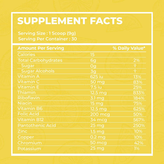 Organic Zesty Lemon Wheatgrass Energy Drink Mix with Antioxidants & Vitamins, Zero Sugar, 270g