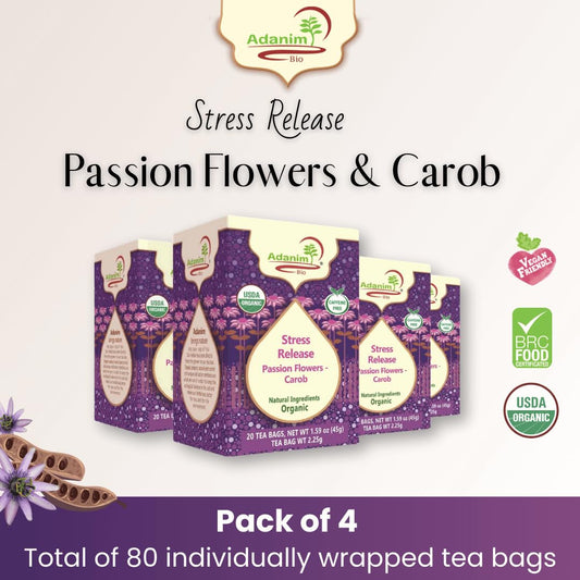 Organic Herbal Tea with Passion Flower and Carob by Adanim Bio - Relaxing and Delicious Blend for a Calming Experience