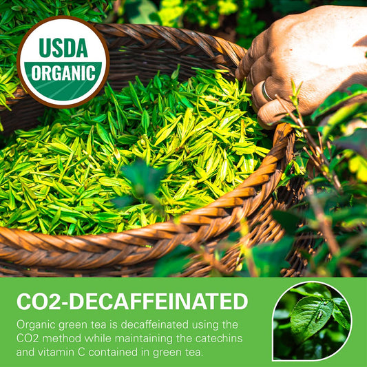 Organic Decaf Green Tea Bags - 100 Count | CO2-Decaffeinated | Super Antioxidant | Resealable Kraft Bag | USDA Certified