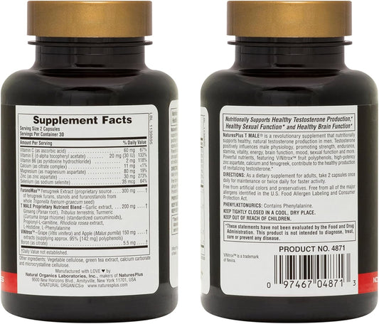 Natures Plus T Male Capsules - Natural Testosterone Support Supplement, 1 Bottle