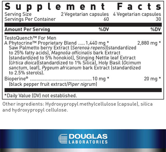 Douglas Laboratories TestoQuench for Men - Herbal Anti-Androgen Supplement to Regulate Testosterone Levels - 120 Capsules