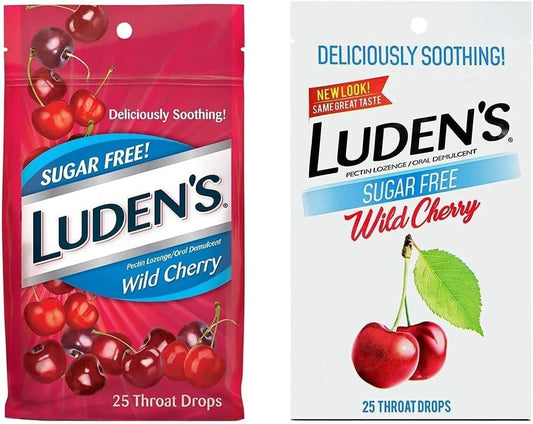 6 Packs Ludens Sugar Free Wild Cherry Throat Drops - 25ct Pectin Lozenges for Sore Throat Relief - Oral Demulcent Supplement