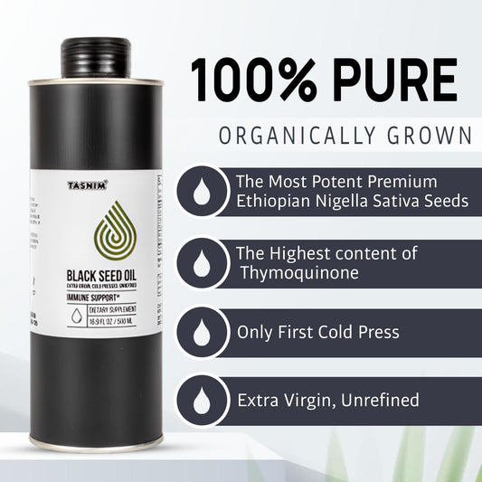 16.9 Fl Oz Ethiopian Black Seed Oil - Cold Pressed for Immune Support - High Potency Thymoquinone for Skin, Hair & Health - Unrefined Black Cumin Seed Oil - Gluten Free - 100% Tasnim