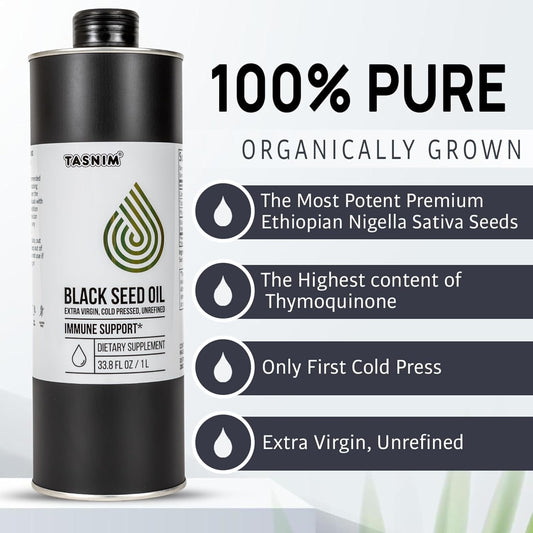 35.27 fl oz Tasnim Black Seed Oil - Cold Pressed with 21% Thymoquinone for Immune Support, Skin & Hair