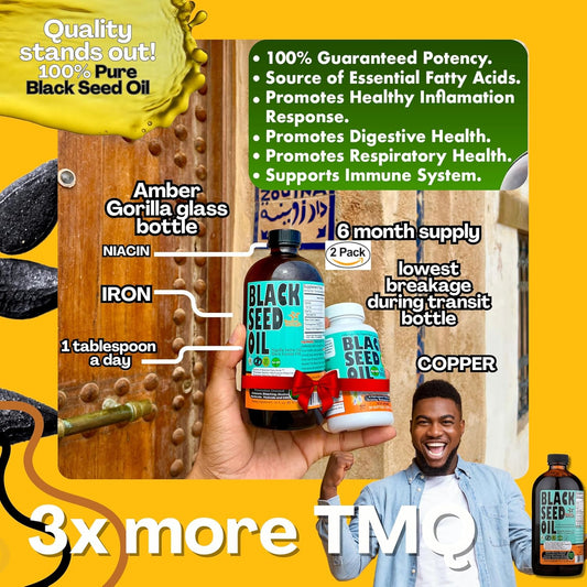 Discover the Power of Sweet Sunnah Black Seed Oil - 2 Pack of 16-Ounce Premium Turkish Black Seed Oil with 3x Thymoquinone - Cold-Pressed, Natural Antioxidant Source for Immunity and Energy Boost