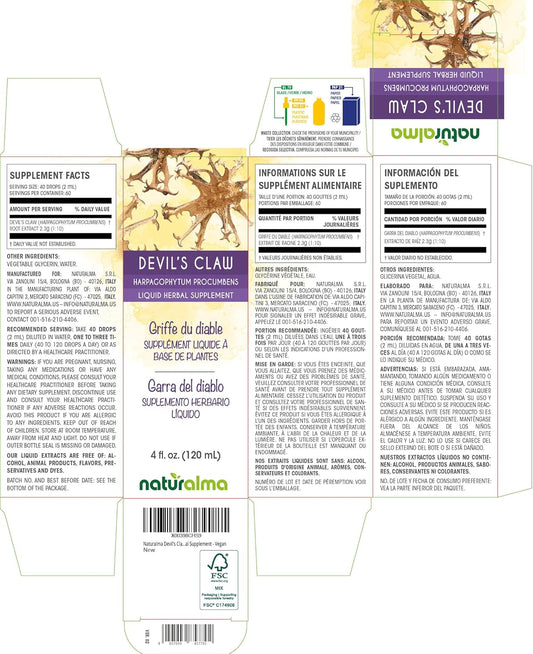 Devil's Claw Root Alcohol-Free Liquid Extract - 4 fl oz Tincture Drops - Herbal Supplement Vegan - Naturalma