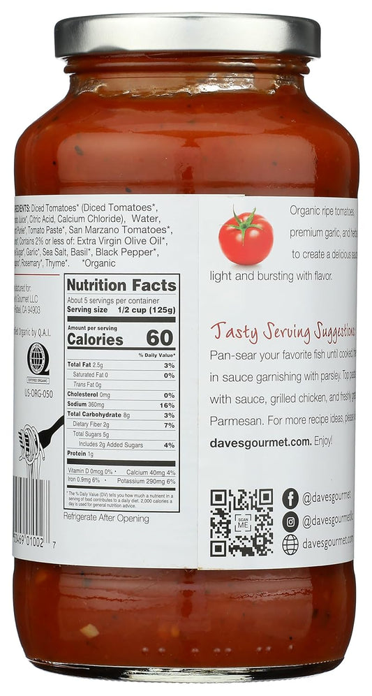 Organic Red Heirloom Tomato Pasta Sauce by Dave's Gourmet - 1.59 lb Jar