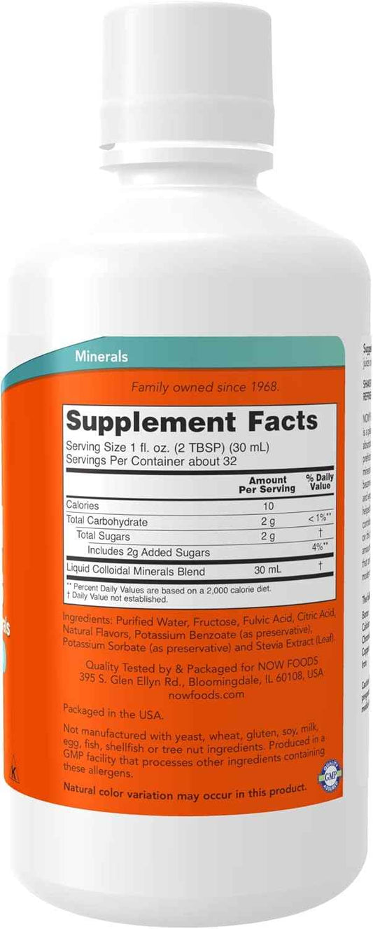 NOW Foods Colloidal Minerals Liquid Supplement, Raspberry Flavor, 32-Ounce - Plant Derived Essential Trace Minerals for Overall Health and Wellness