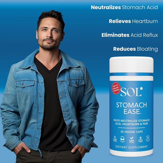 Digestive Relief Supplement with Turmeric - Alleviates Stomach Acid, Supports Digestion, Relieves Heartburn - Effective Stomach Ache Relief, 30 Capsules, SOL Nutrition