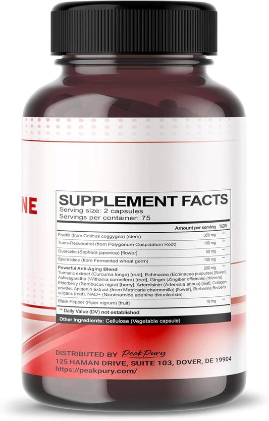USA-Made PeakPury Fisetin Resveratrol Quercetin Elderberry Echinacea Ashwagandha Turmeric Ginger Supplement