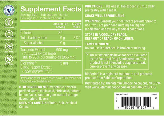 Triple Strength Turmeric with Curcumin Liquid Supplement - 900 MG Orange Flavor for Joint Support - 16 fl. oz. by The Vitamin Shoppe