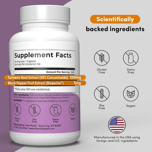 Premium Turmeric Curcumin Supplement with Black Pepper - 500mg Curcumin Extract with 95% Curcuminoids - Herbal Capsules for Joint Support - 60 Count