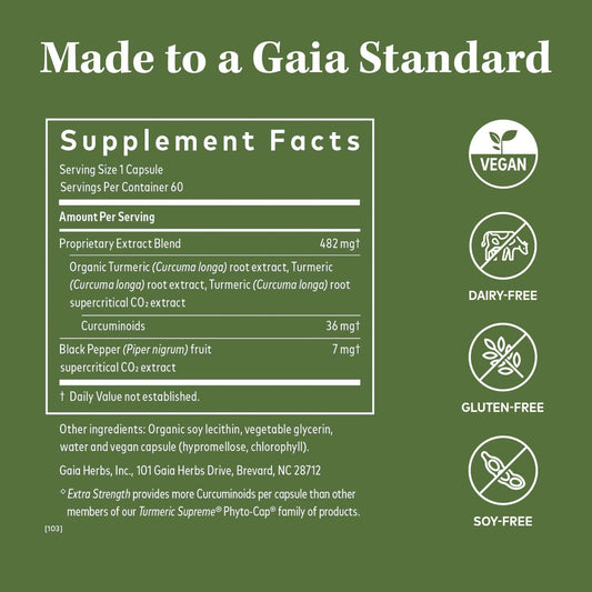 Gaia Herbs Turmeric Supreme Extra Strength & Reishi Mushroom Capsules - Immune & Heart Health Support - Vegan (2 Pack)
