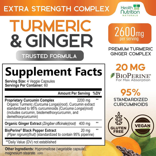 Turmeric Curcumin with BioPerine & Ginger - 2600mg Turmeric Extract Supplement for Heart & Joint Support - 240 Capsules with Black Pepper for Max Absorption