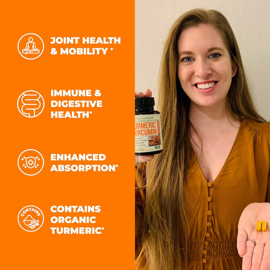Turmeric Curcumin Supplement with BioPerine for Joint Support - High Absorption Vegan Capsules - 1000mg, 95% Standardized Curcuminoids - Non-GMO - 60 Pills with Black Pepper