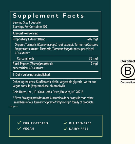 Turmeric Supreme Extra Strength Capsules with Curcumin & Black Pepper for Reducing Swelling - 120 Vegan Liquid Phyto-Capsules - Up to 120-Day Supply