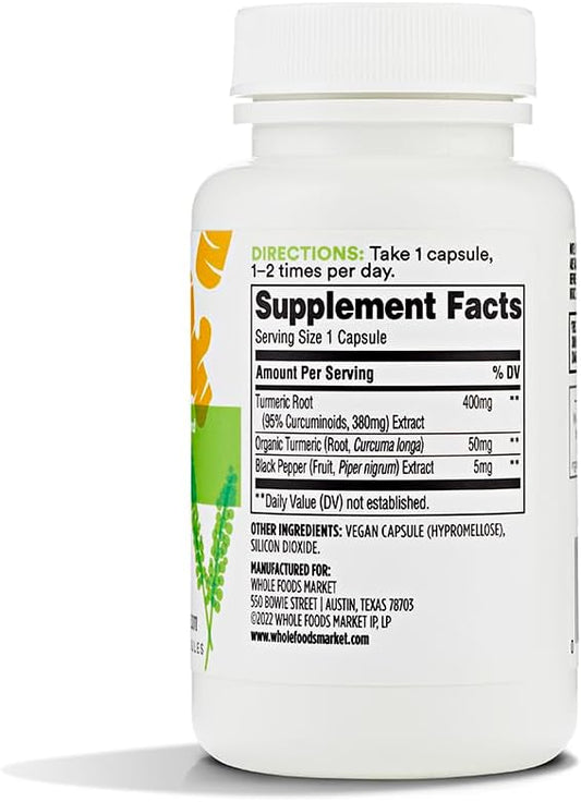 Whole Foods Market 365 Turmeric Capsules - 60 Count, Pack of 2 - Natural Anti-Inflammatory Supplement for Daily Use